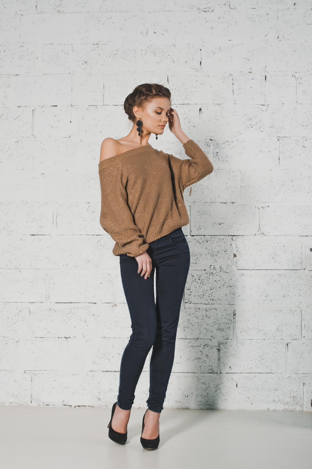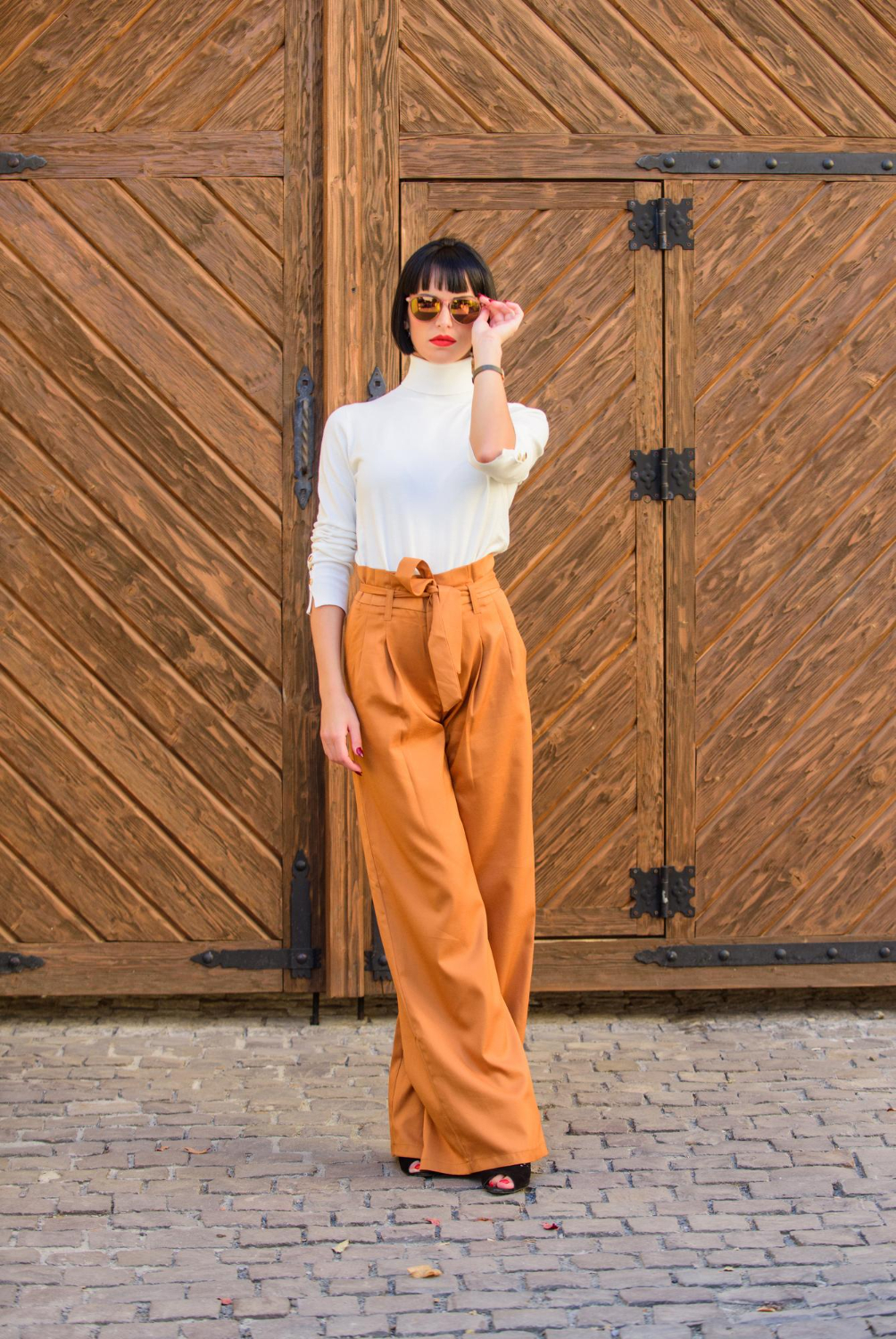 Si prefieres un look más atrevido, opta por un top ajustado y de tela brillante. Combina tu pantalón de vestir con un top con lentejuelas o con detalles metálicos para destacar en la pista de baile. Completa el outfit con unos zapatos de tacón alto y un clutch llamativo.
