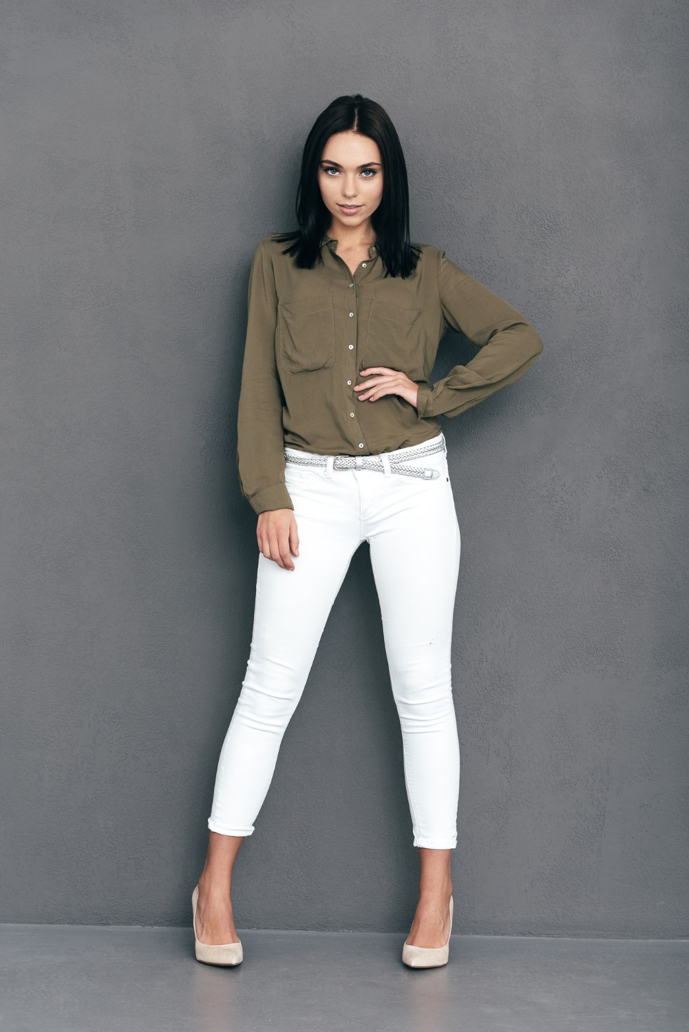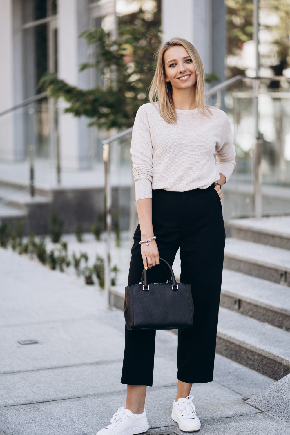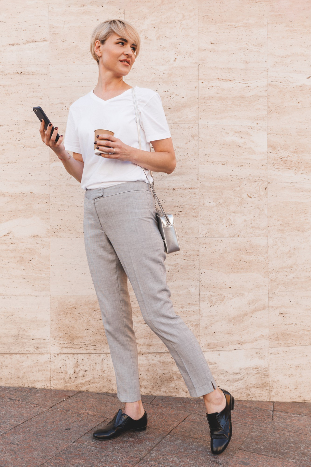 Otra opción para ir a la universidad es combinar tu pantalón de vestir con una camisa blanca de botones y un blazer. Este look te dará un aspecto profesional pero sin dejar de ser apropiado para un ambiente estudiantil. Añade unos zapatos de tacón bajo y un bolso estructurado para completar el conjunto.